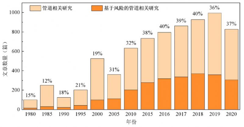 圖 2 基于風(fēng)險的管道相關(guān)研究在管道相關(guān)研究中的占比情況