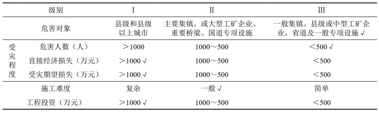 表 4 防治工程分級表