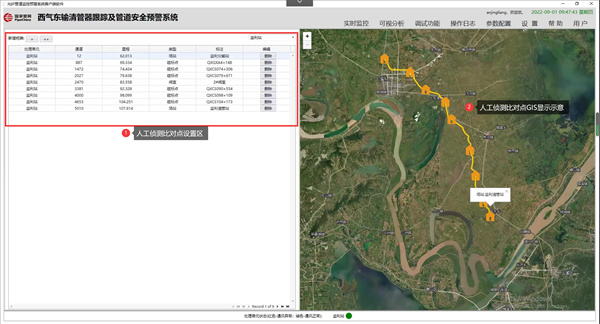 本次應用光纖預警系統跟蹤定位內檢測器,表明其能夠有效識別檢測器運行過(guò)程中外部環(huán)境因素產(chǎn)生的其他信號來(lái)源,客觀(guān)實(shí)時(shí)對事件有效告警,在跟蹤定位檢測器位置和運行時(shí)間上與現場(chǎng)實(shí)際運行參數誤差較小,具有參考性。同時(shí),光纖預警系統能夠進(jìn)行可視化提示且可復制性強,可以實(shí)現以下功能。