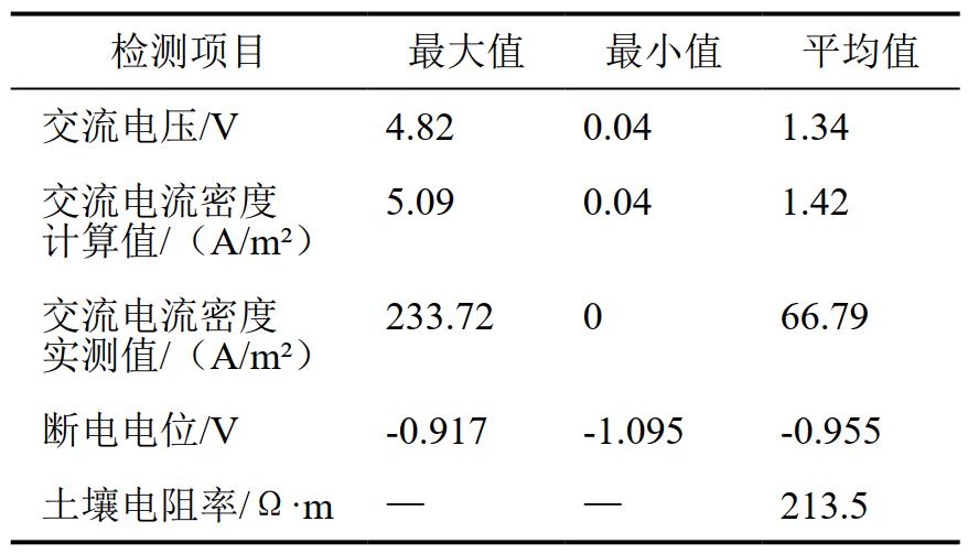 (2)SY/T 0087.6―2021《鋼質(zhì)管道及儲罐腐蝕評價(jià)標準 第6部分:埋地鋼制管道交流干擾腐蝕評價(jià)》標準中對交直流綜合指標進(jìn)行了規定,符合表 2中任一指標即可。在該評價(jià)指標中,所有值均為監測時(shí)段(一般為24小時(shí))內的平均值,標準中同樣未對動(dòng)態(tài)交流雜散電流干擾中可能會(huì )產(chǎn)生的偶發(fā)或頻發(fā)峰值進(jìn)行考慮。如表 2所示,采用另外一個(gè)數據記錄儀采集該測試樁處的斷電電位,最大值為﹣0.917 V,最小值為﹣1.095 V。應用此項評價(jià)指標進(jìn)行評價(jià),則此處無(wú)需采取排流措施。