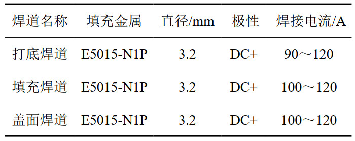 CHE507RH(E5015-N1P)是高韌性超低氫鈉型的低合金鋼焊條,具有優(yōu)良的塑性、低溫韌性和抗裂性能,工藝性能較好,可用于沖擊韌性有更高要求的壓力容器強度型低合金鋼與耐熱型、低溫型低合金鋼之間的焊接,力學(xué)性能見(jiàn)表 1。采用直流反接,可進(jìn)行全位置焊接,焊接工藝參數見(jiàn)表 2。