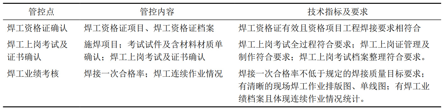 表 1 焊工管理的質(zhì)量關(guān)鍵點(diǎn)