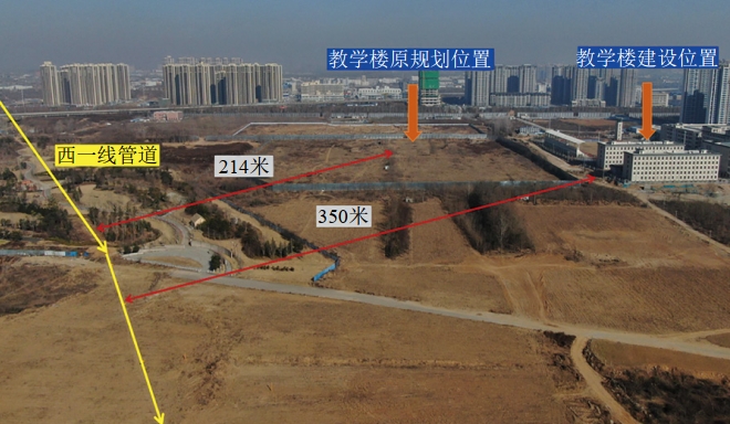 2021年,河南省某地擬在西氣東輸一線(xiàn)管道附近修建一所重點(diǎn)高級中學(xué),教學(xué)樓距離管道214米,位于潛在影響半徑318米之內,建成后將形成新的人員密集型高后果區(圖 1)。經(jīng)過(guò)管道企業(yè)連續多次向發(fā)改、規劃、國土等部門(mén)反映情況,最終在市政府規劃部門(mén)牽頭下,同意將學(xué)校調整至管道350米以外,從而避免了重大安全風(fēng)險。近年來(lái),在管道企業(yè)的主動(dòng)協(xié)調和當地政府的支持下,先后有十余個(gè)涉及人口密集型建設項目得到了調整,從而降低了公共安全風(fēng)險。