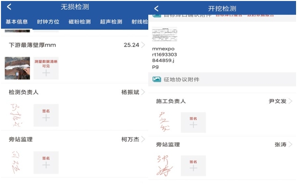環(huán)焊縫開(kāi)挖復檢管理APP將目標焊口確認、焊縫編號記錄、焊口錯邊情況、本體防腐層修復情況等作為關(guān)鍵質(zhì)量管控環(huán)節,設計現場(chǎng)數據填報+拍攝照片(鏈接時(shí)間水印標簽)、視頻等方式對環(huán)焊縫開(kāi)挖復檢關(guān)鍵過(guò)程進(jìn)行定點(diǎn)記錄,確保關(guān)鍵環(huán)節和隱蔽工程施工記錄真實(shí)可靠。
