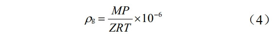 根據理想氣體方程 PV=nRT,并引入一個(gè)修正系數,即壓縮因數 z,按式(4)可推導出管道內氣體密度: