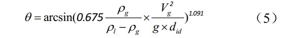 式中:F為作用在流體單位面積上的重力與慣性應力的比率;ρι和ρg 分別為液體和氣體密度,kg·m-3;g 為重力,m·s-2;did 為管道內徑,m;Vg 為表觀(guān)氣體速度,m·s-1;θ為傾斜角,°。