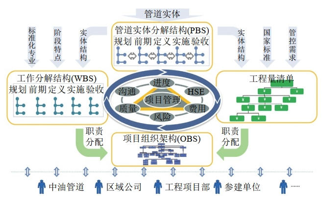 以WBS為核心,圍繞工程實(shí)體,搭建覆蓋業(yè)務(wù)過(guò)程(可研、設計、采辦、施工、外協(xié)、驗收)和項目管理過(guò)程(進(jìn)度、計劃、投資、風(fēng)險、質(zhì)量、HSE、溝通、變更)的工程項目管理平臺,固化項目管理流程,促進(jìn)業(yè)務(wù)的規范化、一體化管理,提升工程建設精細化管理水平,提高項目質(zhì)量(圖 5)。