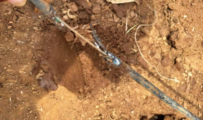 2025年5月9日15點(diǎn)26分,調控中心和永新分輸站上位機出現蓮花合建站通信中斷的報警。經(jīng)排查,判斷通信故障點(diǎn)處于蓮花合建站至龍田閥室之間。永新分輸站立即啟動(dòng)應急響應,對蓮花合建站至龍田閥室段展開(kāi)地毯式搜索,地面未發(fā)現施工作業(yè)或地質(zhì)災害的跡象。嘗試在龍田閥室通過(guò)跳纖措施恢復通信,未能成功,初步斷定光纜已完全斷開(kāi)。公司立即組織人員采用OTDR(光時(shí)域反射儀)結合光纜路由智能定位儀,很快精準鎖定故障點(diǎn)位置,開(kāi)挖后證實(shí)硅芯管和光纜已被竹鼠啃咬殘缺不全(圖 2),隨即對該段硅管進(jìn)行更換并修復相應光纜,同時(shí)用角鋼包裹加以保護。