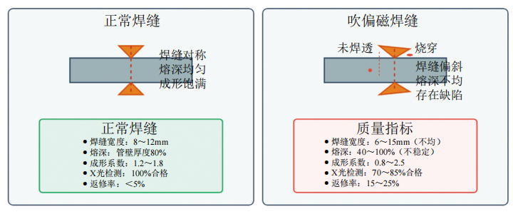 圖 2 磁偏吹對焊縫成型質(zhì)量的影響對比