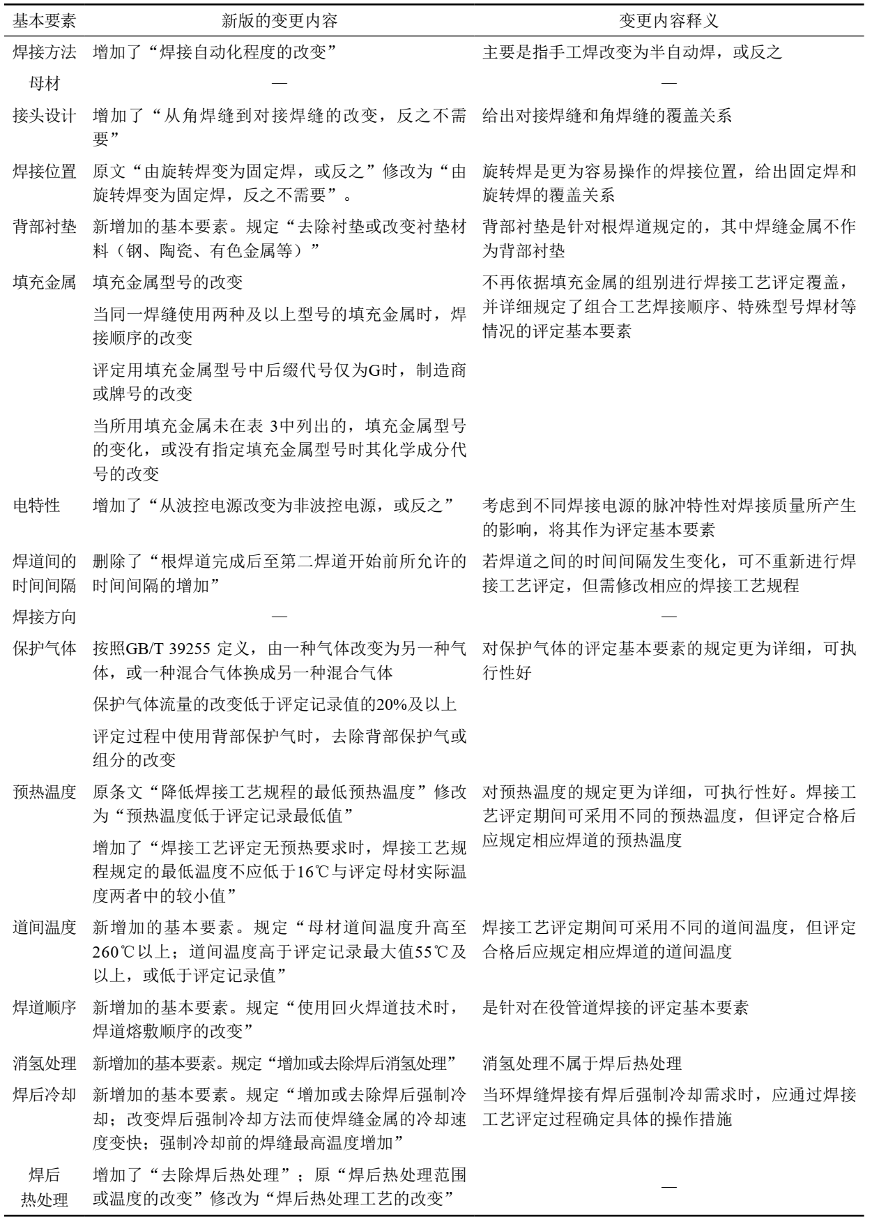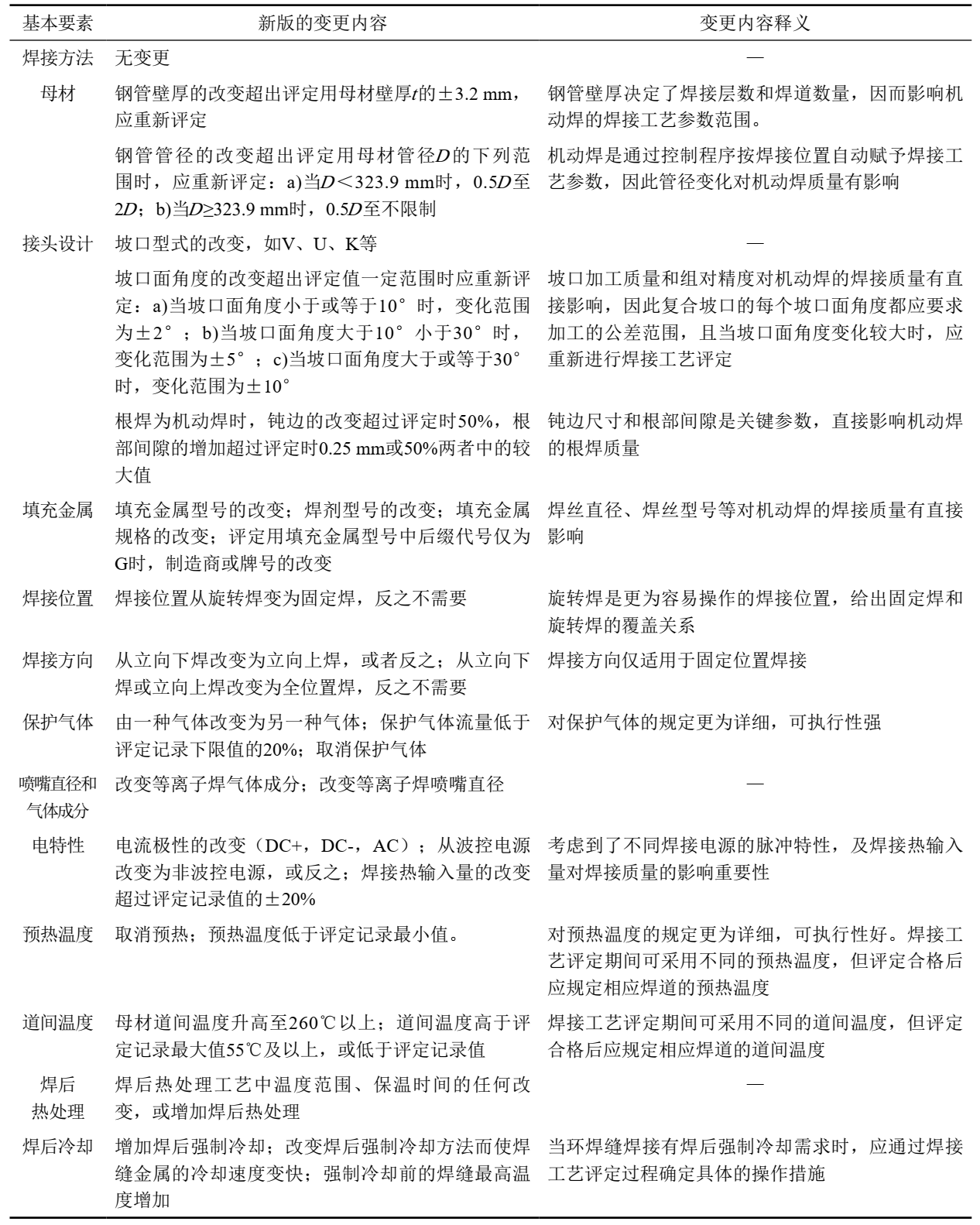 2 焊接工藝評定基本要素的變化