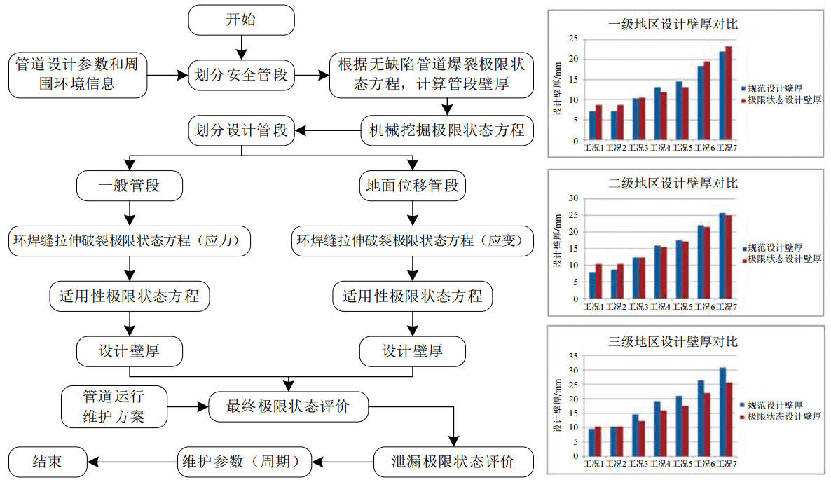 (4)結構設計方法進(jìn)一步發(fā)展。在完善應力設計方法的基礎上,研發(fā)并應用了適用于強震區、活動(dòng)斷層、凍土地區、采空沉陷區等地面位移地段的應變設計方法,健全了結構設計方法,保障了管道本質(zhì)安全。開(kāi)發(fā)了基于可靠性的極限狀態(tài)設計方法(圖 3),以安全等級替代現有的地區等級(輸氣管道)或重要管段(輸油管道)劃分,實(shí)現全生命周期管道風(fēng)險可控,為結構設計方法的變革奠定了基礎。