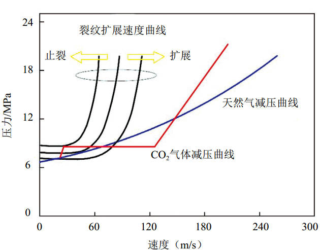 圖 5 超臨界二氧化碳減壓曲線(xiàn)與天然氣減壓曲線(xiàn)的對比示意圖